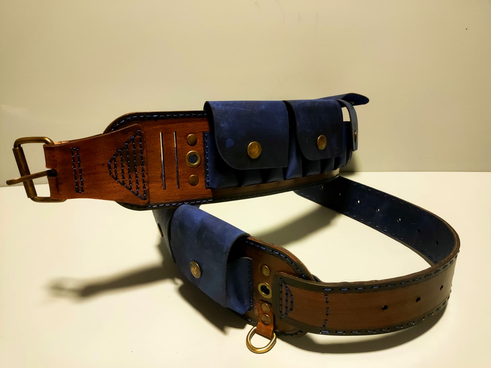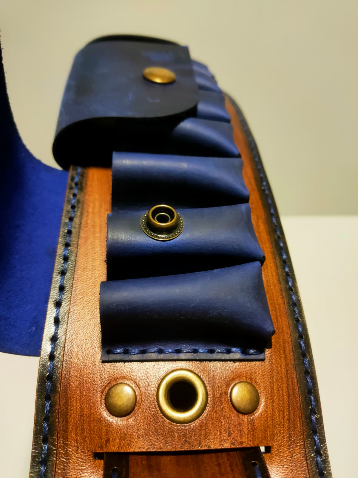 ✔ Ürün rengi ana derimiz el boyaması koyu kahve, fişeklik rengi MAVİ. Bu renk stoklarla sınırlıdır.