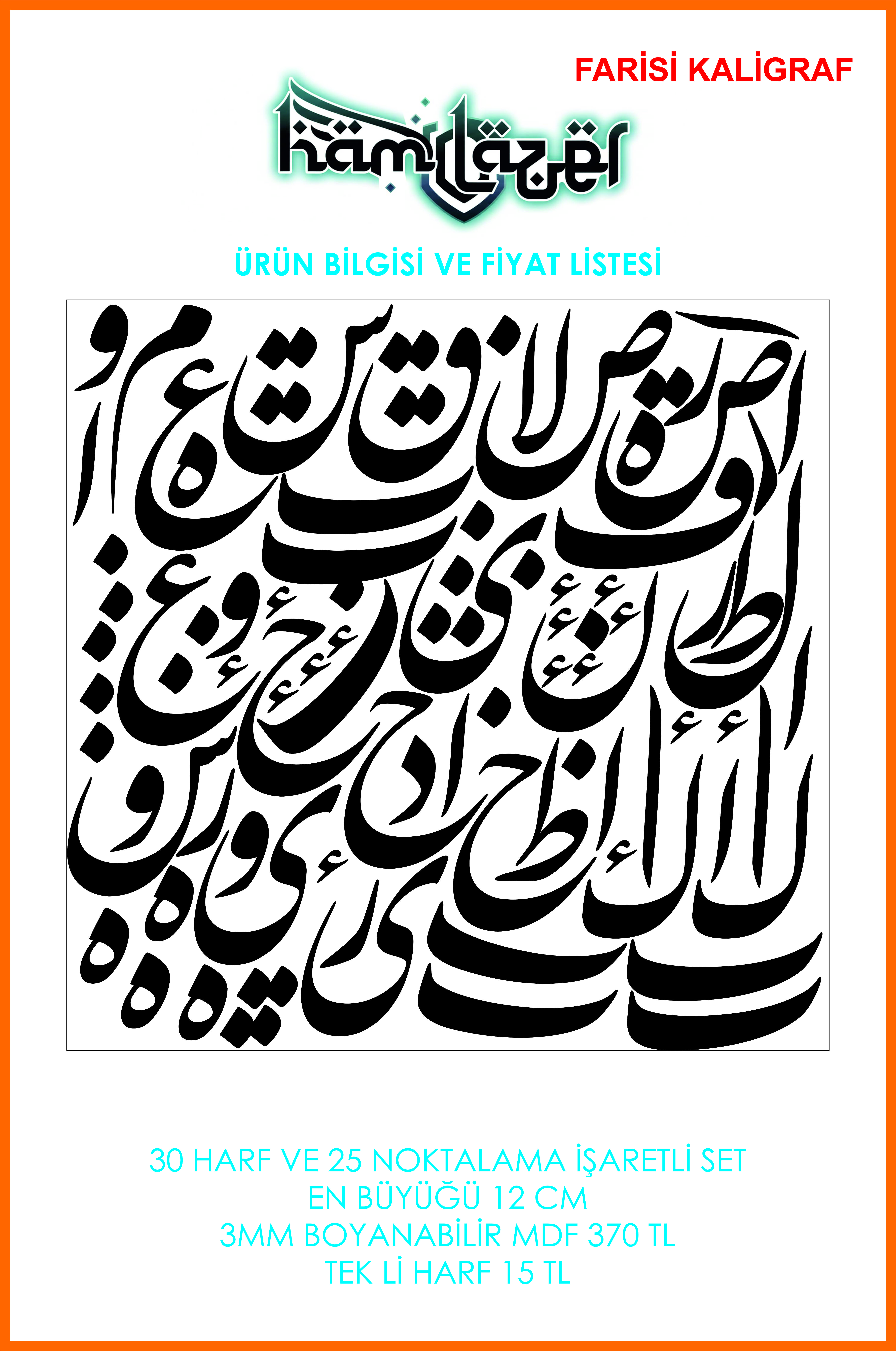 Harflerin en büyüğü yükseklik ortalama 12cm dir diğer harfler buna orantılı boyut farklılıkları göstermektedir