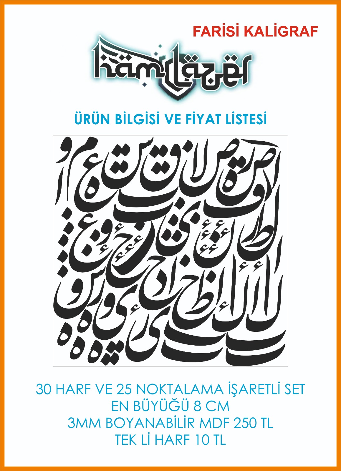 Harflerin en büyüğü yükseklik ortalama 8cm dir diğer harfler buna orantılı boyut farklılıkları göstermektedir